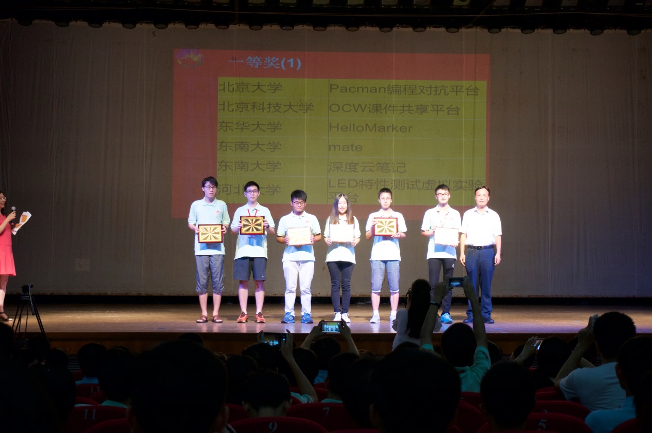 建环1301班白思琦共同开发的“OCW课件共享平台”获得软件应用与开发类决赛一等奖,该奖项得奖率约6%。此外,“课堂动力、动物那些事儿、诗经风韵、趣学形参传递、初中数学——全等三角形的判定方法、3D幻影互动、Transbest、奇妙的视觉欺骗、有一种游戏叫线性代数、《Faded》Launchpad MIDI控制工程”等10件作品分别获得微课与课件等5个类别的二、三等奖及优胜奖。