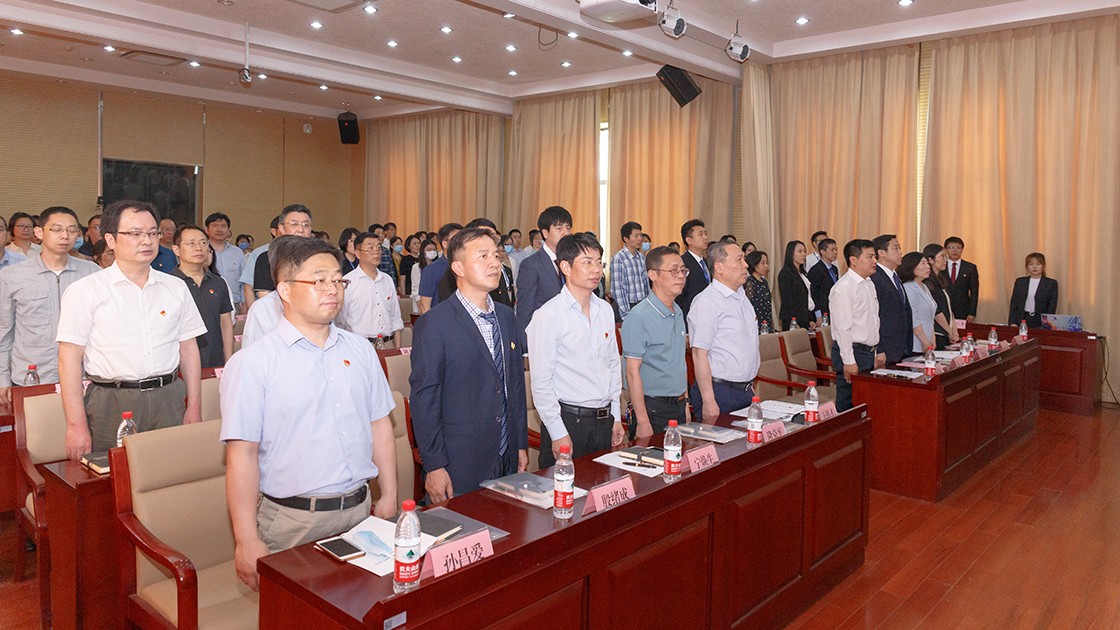 在庄严的国歌声中,主持人宣布大会开始。