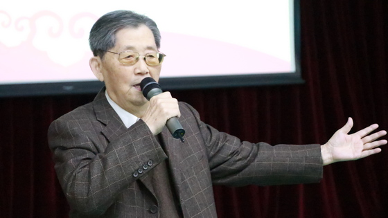 涂序彦代表退休教师讲话,并现场赋诗一首,表达辞旧迎新的喜悦以及对av影片