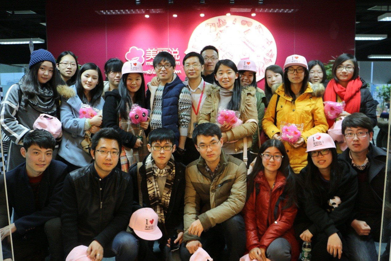 就业指导教师于群老师带队,学生职业发展协会组织了一支共26人的参观队伍出发前往中关村美丽说公司总部,走访了这家集聚时尚女和IT男的创业型名企。参观活动于下午3:00正式开始,美丽说的校园招聘主管尹瑞升老师及其助理热情地接待了到访的计通学子。