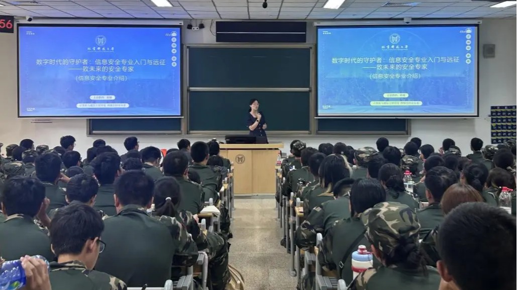 信息安全专题讲座中,胡堰老师通过“震网事件”“乌克兰电力系统攻击”等典型案例,直观阐释网络空间安全的重要性。该专业聚焦密码学、系统安全、工业互联网安全等核心方向,构建“纵向贯通、横向协同”的人才培养模式,旨在培养既具备网络攻防技术研究能力,又能服务国家战略需求的创新型安全人才,以“为数字时代筑牢安全防线”为使命,彰显专业责任担当。