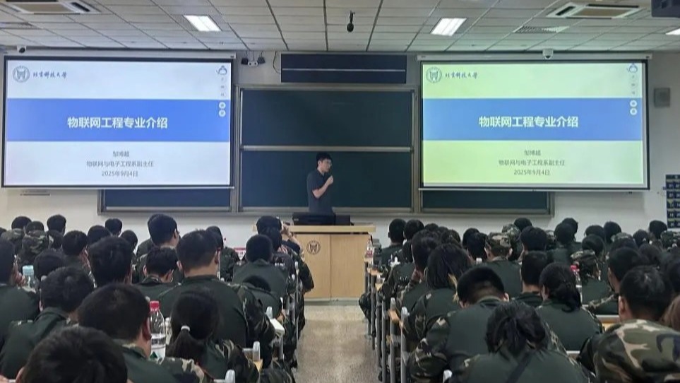 物联网与电子工程系邹博超老师带领新生走进“万物互联”的科技世界,详细介绍物联网的发展脉络与未来趋势。北科大物联网工程专业是全国首批建设单位,现已成为国家级特色专业与北京市一流本科专业建设点。专业以智能物联网系统工程能力培养为核心,科研成果丰硕,培养的学生在深造与就业中表现突出,众多校友活跃于国内外顶尖高校及科技企业,为行业发展注入活力。