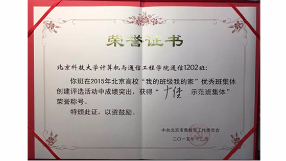 12月7日下午, 2015年北京高校“我的班级我的家”示范班集体创建评选活动在北京工业大学落下帷幕。av影片通信1202凭借“通信连接世界,科技改变生活”的鲜明班级特色和精彩的答辩展示荣获北京高校“十佳示范班集体...