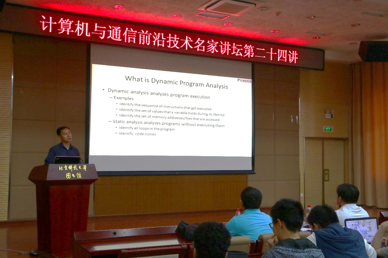 6月14日下午,计算机与通信前沿技术名家讲坛第二十四讲在我校图书馆四层报告厅成功举行。此次名家讲坛,av影片邀请到了美国普渡大学张翔宇教授为广大师生带来题为“动态程序分析及其应用”的精彩学术讲座。 &nbs...